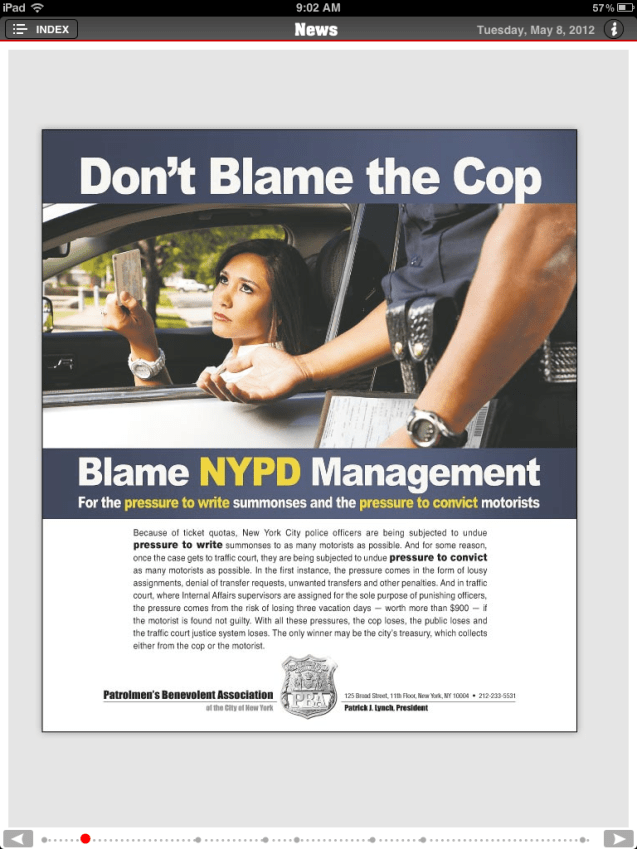 My son lives and works in New York City. He sent me this ad that was placed in the New York Times this week by the PBA — The Patrol Officer’s Benevolent Association — the union that represents New York cops.