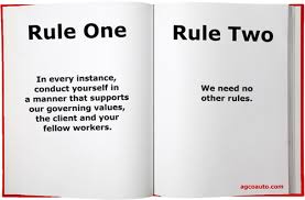 In short, your employee manual should put your organization’s best foot forward and help new employees become successful. During the Quality Improvement movement years ago there were two things we disdained: onerous employee manuals (often preferring “Rule One and Rule Two” below) and “after the fact” performance evaluations (see tomorrow’s post about that issue!)
