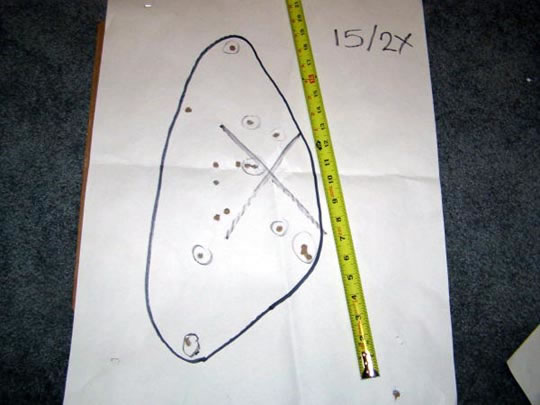 For example, here are three patterns: #00 buckshot pattern dispersal at 5, 10 and 15 yards.