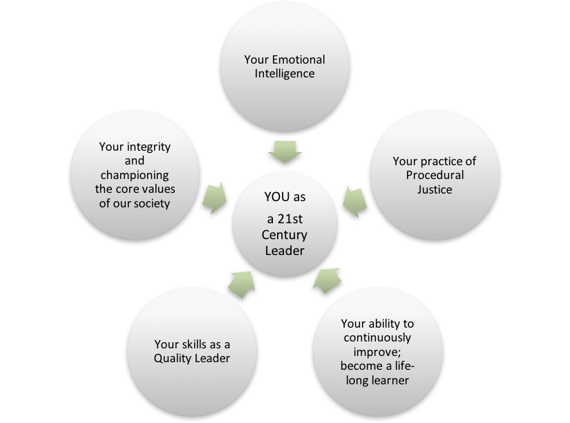 The graphic below is how we visualize influences of values and skill-building on our ability to be 21st century police leaders; men and women who can build trust and support among those whom we serve.