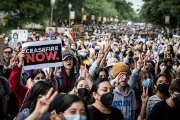 [Protesters at George Washington University by Jordan Tovin for The Washington Post]