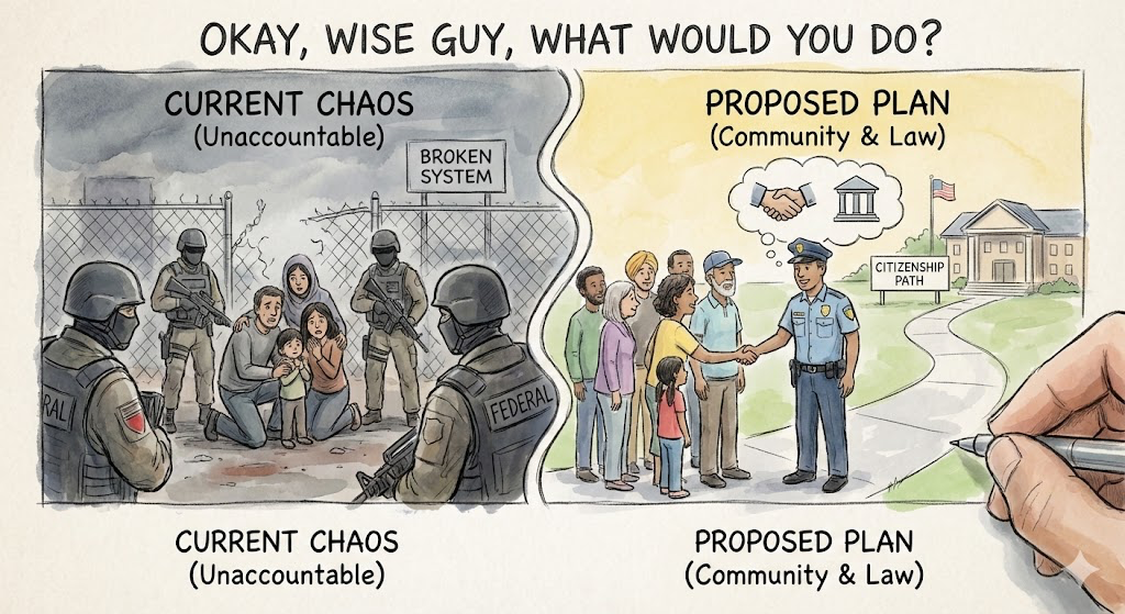 The Crux of the Matter: Local police and sheriff’s deputies should not be immigration enforcers—that’s not their job. Their job is to serve and protect everyone in their community. Adding federal financial and logistical support to help our local police remove truly dangerous people is one thing; allowing masked goons to terrorize neighborhoods is another.